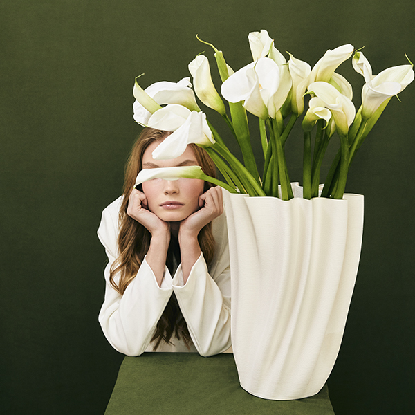 Фарфоровая ваза Crumple с фактурными изгибами как самостоятельный арт-объект.
